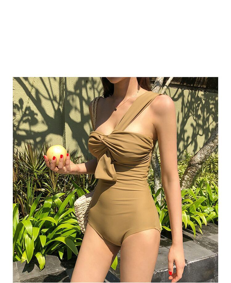 ワンショルダーが大人っぽい印象のワンピースタイプ。