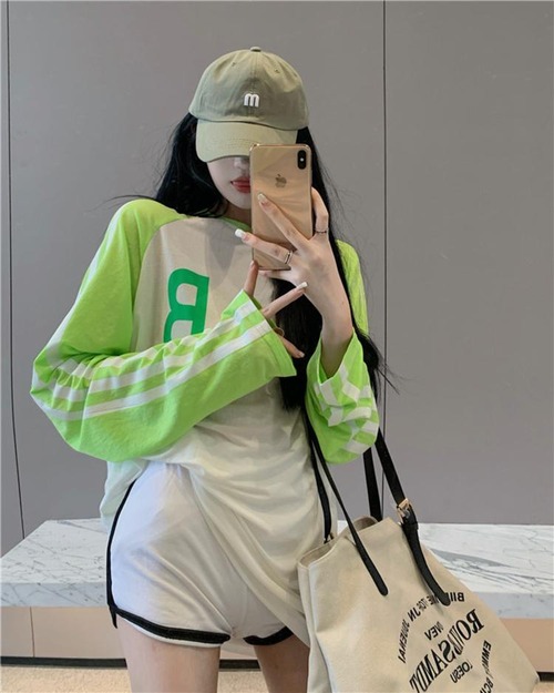 【送料無料】2色 長袖 トップス カットソー l バイカラー ロゴ スリーライン ロンT ポップ スポーティ ストリート 薄手 プルオーバー 春 夏 シャツ ロング丈 アクティブ カッコイイ レディース グリーン 蛍光 黄緑 ブラック 緑 黒 運動 ヨガ フィットネス ゆるかじ 楽ちん おしゃれ デート 大人可愛い お出かけ 韓国 ファッション 海外 人気 モデル こなれ感 ツートン モード クール アメリカン 10代 20代 30代 プチプラ