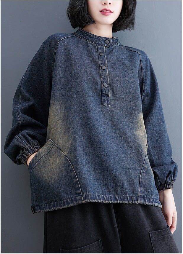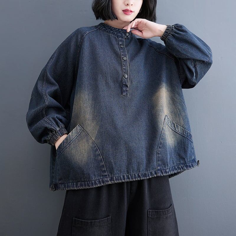 【送料無料】デニム プルオーバー 長袖 トップス l 無地 クール ダメージ風 ヴィンテージ風 インパクト カッコイイ レトロ トレーナー風 ブルーデニム カジュアル ママ コーデ レディース M 大きいサイズ L XL 2XL ブルー 青 春 秋 冬 おしゃれ デート お出かけ 存在感 こなれ感 抜け感 女子会 普段使い デイリー使い 休日 主役級 インスタ映え 韓国ファッション 海外トレンド 大人気 高見え 流行 10代 20代 30代 40代 プチプラ