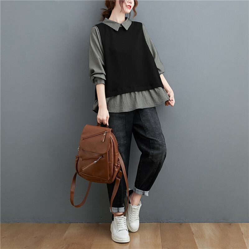 【送料無料】シャツ ブラウス 長袖 ジッパー l シンプル 無地 重ね着風 トップス レディース 襟付き カッコイイ きれいめ スタイリッシュ モテる スタイルアップ 着痩せ レディース 大きいサイズ L XL 2XL グレー ブラック 灰色 黒 春 秋 冬 おしゃれ デート お出かけ 存在感 こなれ感 抜け感 女子会 普段使い デイリー使い 休日 主役級 インスタ映え 韓国ファッション 海外トレンド 大人気 高見え 流行 10代 20代 30代 40代 プチプラ