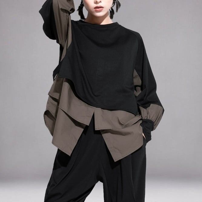 【送料無料】3色 シャツ ブラウス 長袖 l 無地 バイカラー 個性的 トップス レディース モード系 カッコイイ 黒 白 緑 グリーン スタイリッシュ モテる スタイルアップ 着痩せ 小さいサイズ M 大きいサイズ L ブラック ホワイト カーキ 春 秋 冬 おしゃれ デート お出かけ 存在感 こなれ感 抜け感 女子会 普段使い デイリー使い 休日 主役級 インスタ映え 韓国ファッション 海外トレンド 大人気 高見え 流行 10代 20代 30代 40代 プチプラ