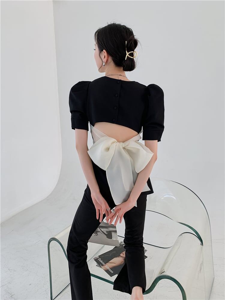 【送料無料】2色 トップス 半袖 リボン l セクシー ペプラム プルオーバー シック クール きれいめ 華やか モテる スタイルアップ 個性的 可愛い 着痩せ スタイリッシュ 長袖 レディース 小さいサイズ XS S M L ホワイト ブラック 白 黒 春 夏 スプリング サマー カワイイ おしゃれ デート お出かけ 存在感 こなれ感 抜け感 女子会 普段使い 休日 主役級 インスタ映え 韓国ファッション 海外トレンド 大人気 高見え 流行 10代 20代 30代 40代 プチプラ