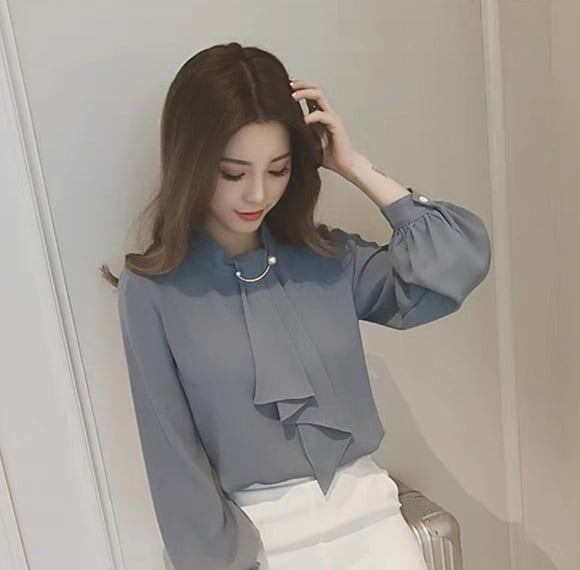 【送料無料】 とろみ ボウタイ シフォンブラウス l シャツ ブラウス 白シャツ 白トップス ショート ショート丈 袖あり 長袖 スタンドカラー シフォン かわいい 大人可愛い きれいめ シンプル 大人 上品 おしゃれ お洒落 大人女子 フォーマル とろみ感 無地 春 秋 入学式 入園式 卒業式 卒園式 20代 30代 OL 通勤 学生 通学 デート お出かけ 女子会 着回し 普段使い 韓国 くすみカラー ゆったり 大きいサイズ S M L XL 2XL 色展開 白 ホワイト 青 ブルー ピ