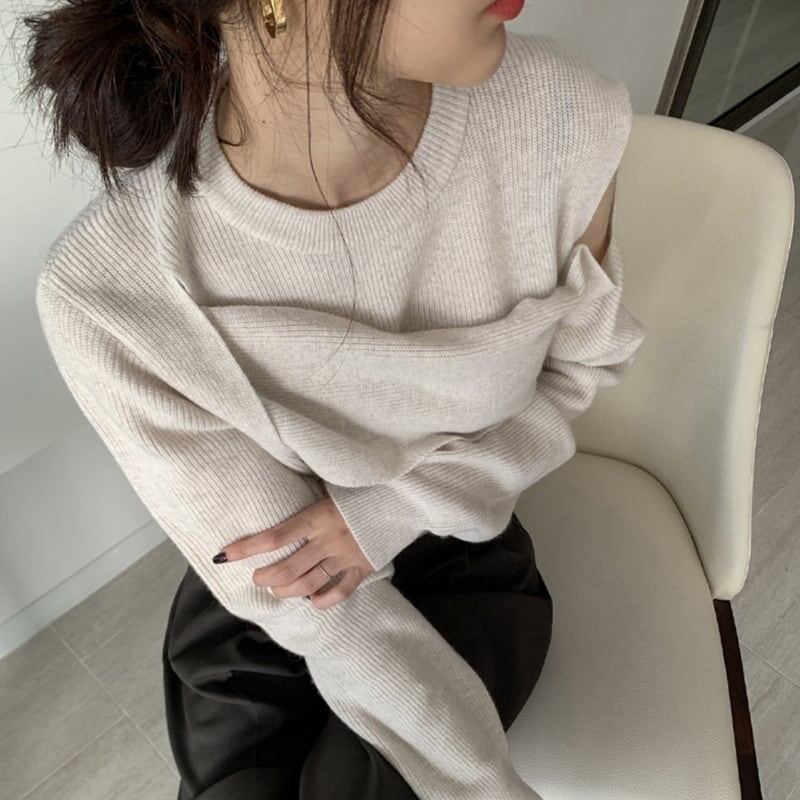 【送料無料】 4色 ニット トップス l レディース オフショルダー ラウンドネック おしゃれ かわいい 大人可愛い 長袖 プルオーバー 個性的 レトロ 白 グレー 赤 緑 オフホワイト ワインレッド グリーン 大人かわいい こなれ感 インスタ映え アイテム 韓国 ファッション お洒落 カジュアル コーデ デート 通学 学生 OL 通勤 主役級 10代 20代 30代 春 秋 冬 トレンド 抜け感 オシャレ 存在感 ガーリー オシャレ 個性的 大人カジュアル