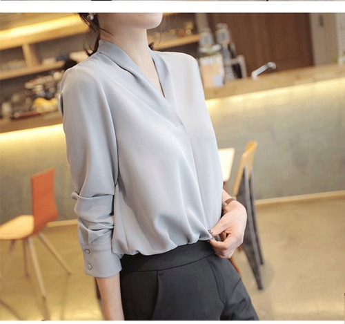 【送料無料】 シフォンシャツ トップス ブラウス l 襟なし シフォン 大人可愛い 無地 春 秋 冬 20代 30代 OL お出かけ 着回し S M L XL 2XL ホワ