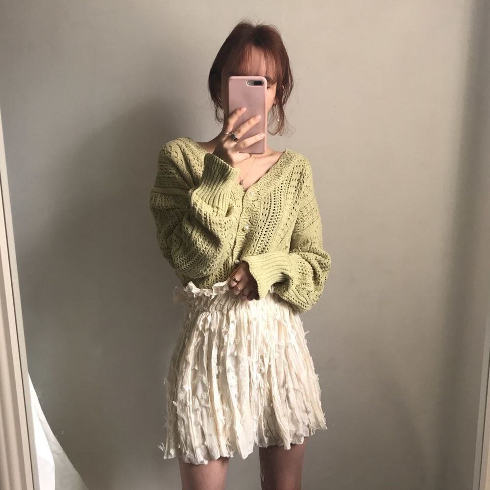 【送料無料】 2色 カーディガン ニット l トップス 重ね着 ルーズ Vネック 長袖 おしゃれ 白 緑 ホワイト グリーン カジュアル 可愛い ゆったり こなれ感 コーデ 通勤 学生 10代 20代 30代 春 秋 冬 トレンド インスタ映え 韓国 ファッション お揃い 双子 普段着 デート ママ 公園 女子会 着回し 清楚 お洒落 存在感 主役級 ガーリー ゆる とろみ感 かわいい 存在感 プチプラ 安い 編み お出かけ