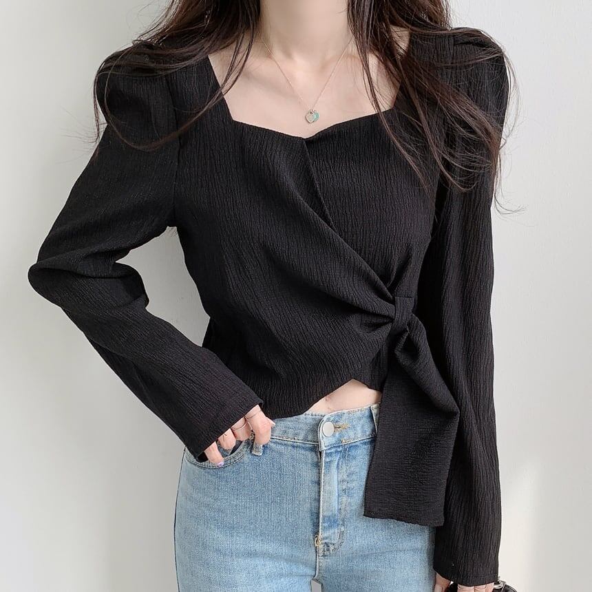【送料無料】 3色 トップス シャツ l レディース 長袖 プルオーバー カットソー 白 黒 茶 ホワイト ブラック モカブラウン リボン スクエアネック カシュクール 襟なし シンプル かわいい おしゃれ 清楚 大人女子 S M こなれ感 お洒落 大人可愛い ガーリー 個性的 存在感 クール 10代 20代 30代 通勤 学生 OL 休日 お出かけ デート 女子会 韓国 ファッション コーデ インスタ映え 人気 トレンド 抜け感 レトロ 主役級 オシャレ ルーズ デザイン 可愛い