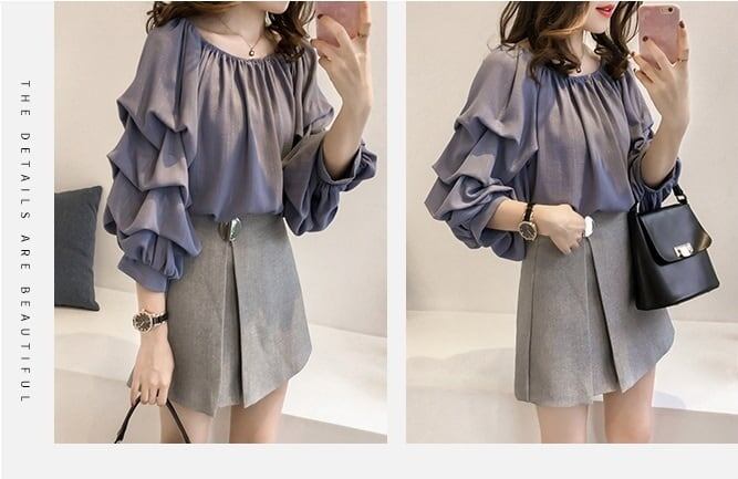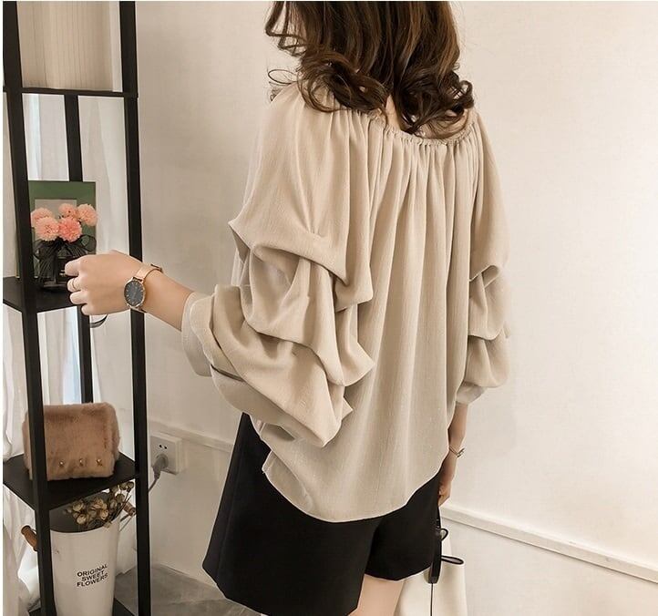 くすみカラーでこなれ感を演出できる長袖ブラウスです。