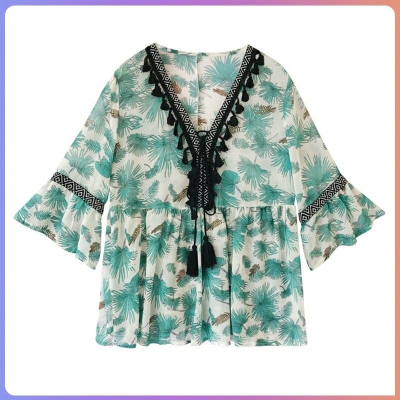【送料無料】3色 シャツ ブラウス 花柄 l フレア Vネック ゆったり 大人可愛い 上品 七分袖 袖あり トップス レディース ボタニカル エスニック アジアン 個性的 春 夏 ブラック グリーン ブラウン 黒 緑 茶色 大きいサイズ XL 2XL 3XL 4XL セレブ カワイイ おしゃれ デート お出かけ 存在感 こなれ感 抜け感 女子会 普段 デイリー 休日 主役級 インスタ映え 韓国ファッション 海外 ロングシャツ ロングブラウス 10代 20代 30代 40代 プチプラ