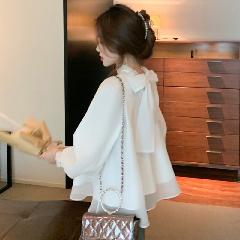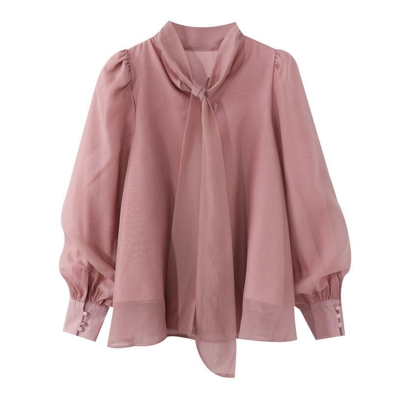 【送料無料】2色 ブラウス シャツ リボン l ゆったり シフォン シンプル 透け感 シースルー 大人可愛い トップス レディース 無地 春 夏 キュート ラブリー 上品 長袖 レディース ピンク ホワイト 白 春 夏 スプリング サマー 大きいサイズ XL セレブ カワイイ おしゃれ デート お出かけ 存在感 こなれ感 抜け感 女子会 普段使い デイリー使い 休日 主役級 インスタ映え 韓国ファッション 海外 大人気 高見え トレンド 10代 20代 30代 40代 プチプラ