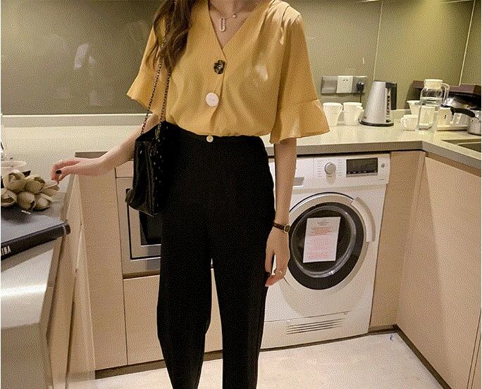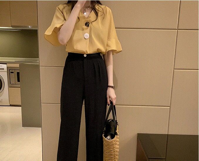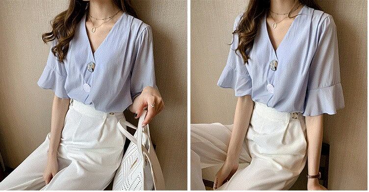 【送料無料】3色 ブラウス シャツ ラフ l シンプル フレア Vネック 大きいサイズ 個性的 きれいめ トップス 半袖 レディース 大人可愛い キュート ラブリー 上品 半袖 レディース ホワイト ブルー イエロー 白 青 黄色 春 夏 スプリング サマー 大きいサイズ XL 2XL 3XL 4XL セレブ カワイイ おしゃれ デート お出かけ こなれ感 抜け感 女子会 デイリー インスタグラマー 韓国ファッション 大人気 高見え トレンド 10代 20代 30代 プチプラ