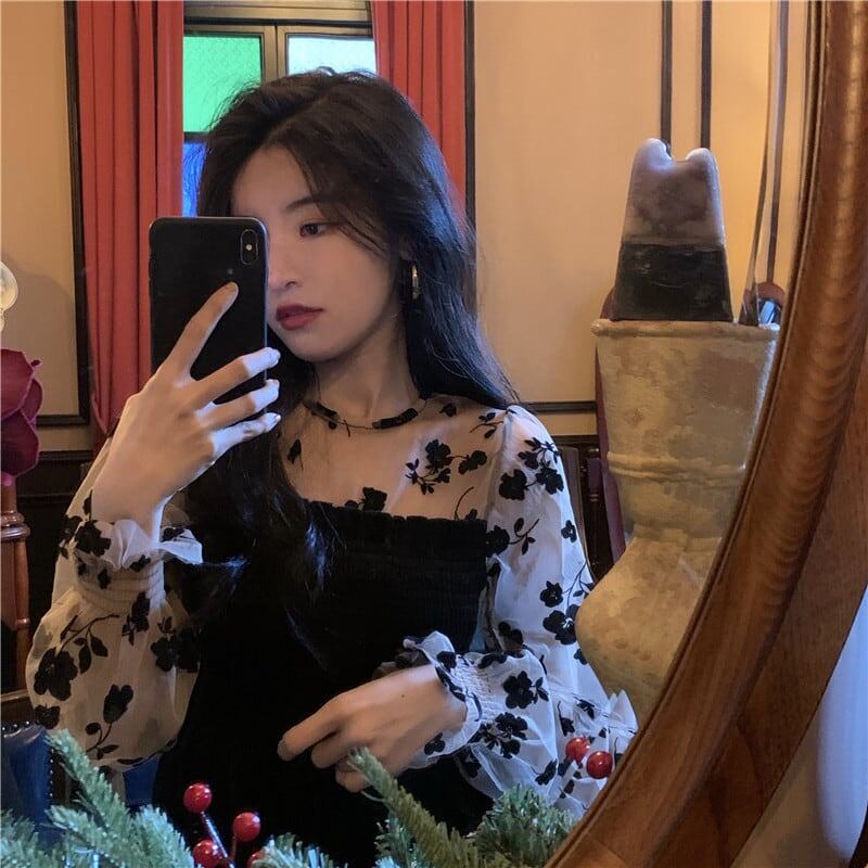 【送料無料】 2色 トップス レディース l 黒 茶 長袖 プルオーバー 花柄 襟なし 大人可愛い レトロ かっこいい おしゃれ カジュアル こなれ感 セクシー インスタ映え 秋 冬 10代 20代 30代 通勤 学生 OL 女子会 休日 デート クラブ 普段使い パーティー お揃い 双子 韓国 ファッション コーデ 人気 大人カジュアル クール シンプル マニッシュ トレンド 個性的 主役級 チューブトップ 華やか ゴージャス 切り替えデザイン ブラック ブラウン