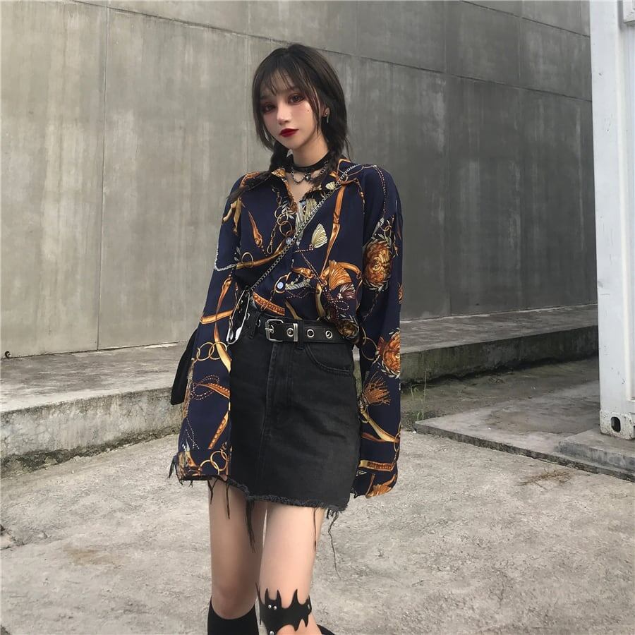 総柄が個性的なロングシャツ
