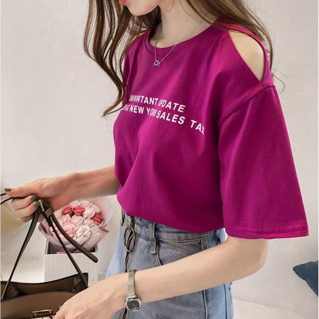 【送料無料】4色 Tシャツ レディース オフショル l トップス 春 夏 カジュアル カッコイイ ラフ キュート 個性的 半袖 ロゴ パープル ホワイト オレンジ ブルー 紫 白 青 大きいサイズ XL 2XL 3XL 4XL 春 夏 スプリング サマー カワイイ おしゃれ デート お出かけ 存在感 こなれ感 抜け感 女子会 普段使い デイリー使い 休日 主役級 インスタグラマー インスタ映え 韓国ファッション 海外トレンド オルチャン 10代 20代 30代 40代 プチプラ