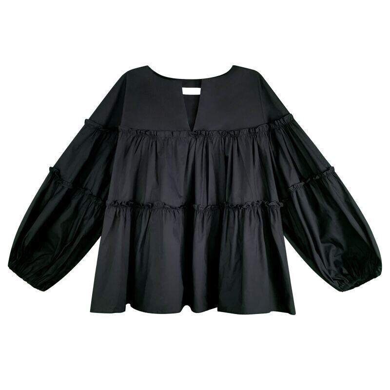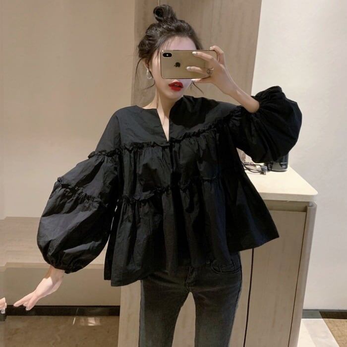 【送料無料】 Ⅴネックティアードブラウス トップス ブラウス l 長袖 パフスリーブ Vネック Aライン かわいい 大人可愛い シンプル カジュアル 大人 おしゃれ お洒落 大人可愛い 大人女子 ラブリー キュート ガーリー 存在感 無地 春 夏 秋 10代 20代 30代 レディース 学生 通学 デート お出かけ 公園デビュー 女子会 休日 着回し 普段使い 韓国 韓国系 色