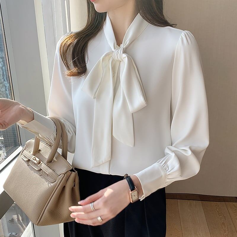 【送料無料】 長袖ボウタイブラウス トップス ブラウス l 長袖 シフォン リボン かわいい 大人可愛い きれいめ シンプル 大人 上品 おしゃれ お洒落 大人可愛い 大人女子 こなれ感 ラブリー キュート ガーリー 無地 春 夏 秋 10代 20代 30代 レディース OL 通勤 学生 通学 デート お出かけ 女子会 休日 着回し 普段使い 重ね着 サイズ S M L XL 2XL 色