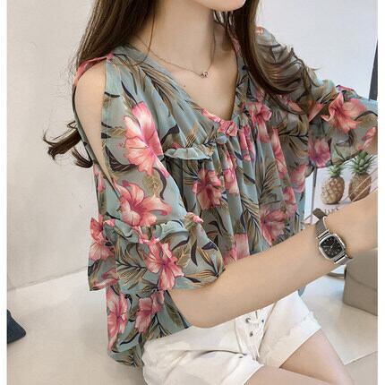 【送料無料】 オフショルダー花柄ブラウス トップス ブラウス l 半袖 オフショル ワンショルダー シフォン かわいい 大人可愛い シンプル カジュアル 大人 おしゃれ お洒落 アジアン 大人可愛い 大人女子 個性的 無地 チェック柄 春 夏 10代 20代 30代 レディース 学生 通学 デート お出かけ 女子会 休日 着回し 普段使い 重ね着 韓国 韓国系 オルチャン サイズ M L XL 2XL 3XL 色展開 白 ホワイト 青 ブル