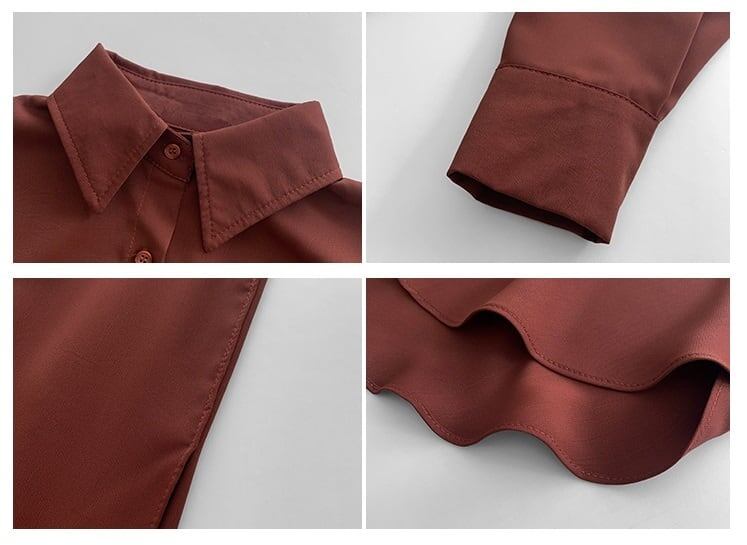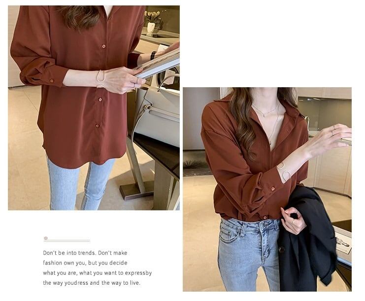 とろみ感のあるシンプルなシフォン素材のシャツブラウス。