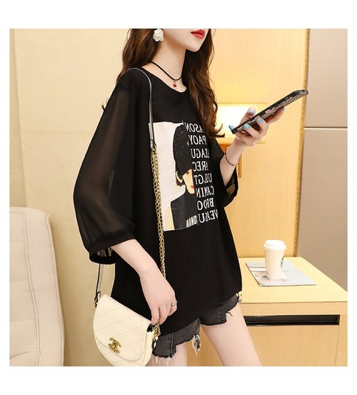 【送料無料】 2色 トップス カットソー l レディース ロンT 五分袖 シースルー バックシャン レース リボン プリント 甘辛 おしゃれ 襟なし カジュアル 可愛い こなれ感 コーデ 黒 白 ブラック ホワイト 通学 学生 通勤 OL 10代 20代 30代 春 秋 トレンド インスタ映え 韓国 ファッション お揃い 双子 女子会 お出かけ デート お洒落 存在感 主役級 個性的 ガーリー セクシー モテ かわいい 大人可愛い