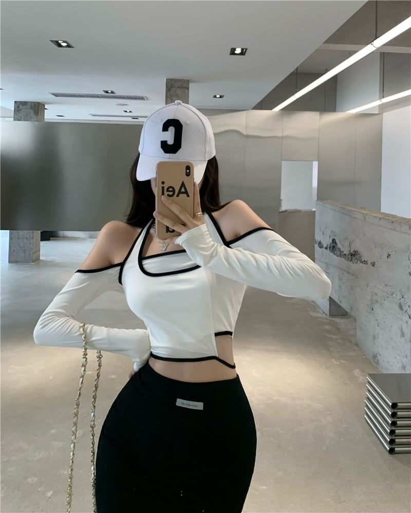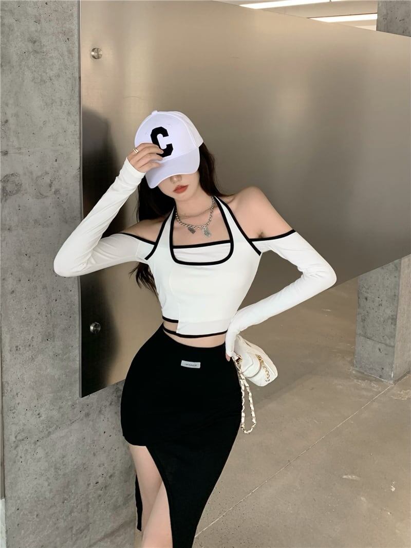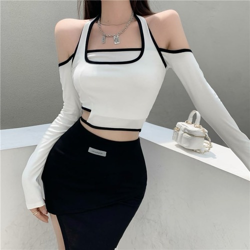 【送料無料】 3色 トップス カットソー l レディース ロンT ホルダーネック グレー 白 黒 ホワイト ブラック 長袖 ショート丈 おしゃれ 襟なし カジュアル 可愛い こなれ感 コーデ 通学 学生 通勤 OL フィットネス ダンス 10代 20代 30代 春 夏 秋 冬 トレンド インスタ映え 韓国 ファッション お揃い 双子 女子会 お洒落 存在感 主役級 個性的 ガーリー セクシー タイト かわいい 大人可愛い