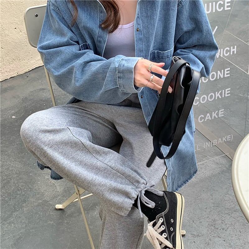 ちょっと肌寒い時期や冷房対策に活躍しそうなシンプルブルーデニムシャツ。