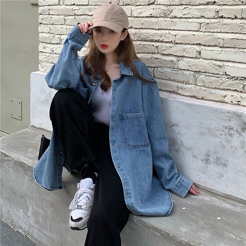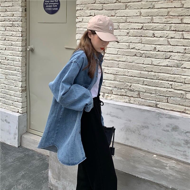 【送料無料】トップス レディース デニム シャツ l 長袖 ジャケット ロング丈 オーバーサイズ 無地 ブルー 薄手 青 カジュアル 大人女子 こなれ感 ラフ感 春 秋 10代 20代 30代 ロングシャツ ゆったり メンズライク ジーンズ gジャン おしゃれ 着回し S M L トレンド 韓国 ファッション シンプル コーデ スタイル