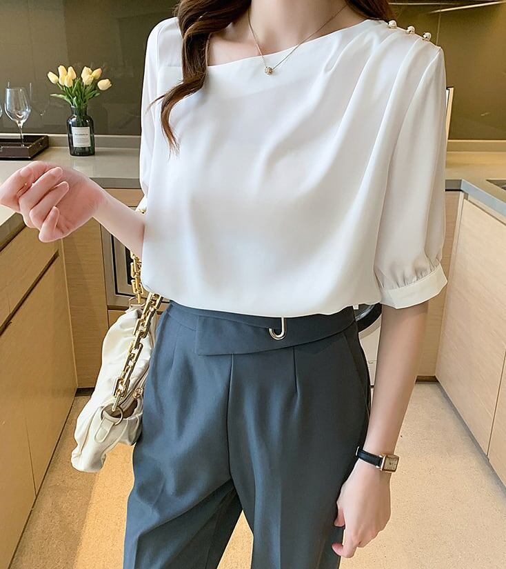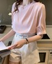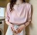 【送料無料】 半袖サテンブラウス トップス ブラウス l 半袖 パフスリーブ シフォン 大人可愛い きれいめ シンプル カジュアル 大人 おしゃれ お洒落 大人可愛い 大人女子 ラブリー キュート ガーリー 無地 春 夏 10代 20代 30代 レディース 学生 通学 デート お出かけ 女子会 休日 着回し 普段使い 韓国 韓国系 オルチャン サイズ S M L XL 色展開 白