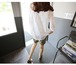 レース使いの袖あり白シャツ。