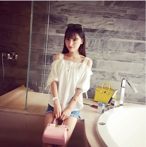 【送料無料】 トップス レディース シャツ l オフショルダー 五分袖 シフォン ホワイト 白ブラウス 無地 ゆったり 可愛い ガーリー ふんわり 通勤 通学 デート モテ 女子力 春 夏