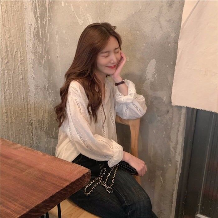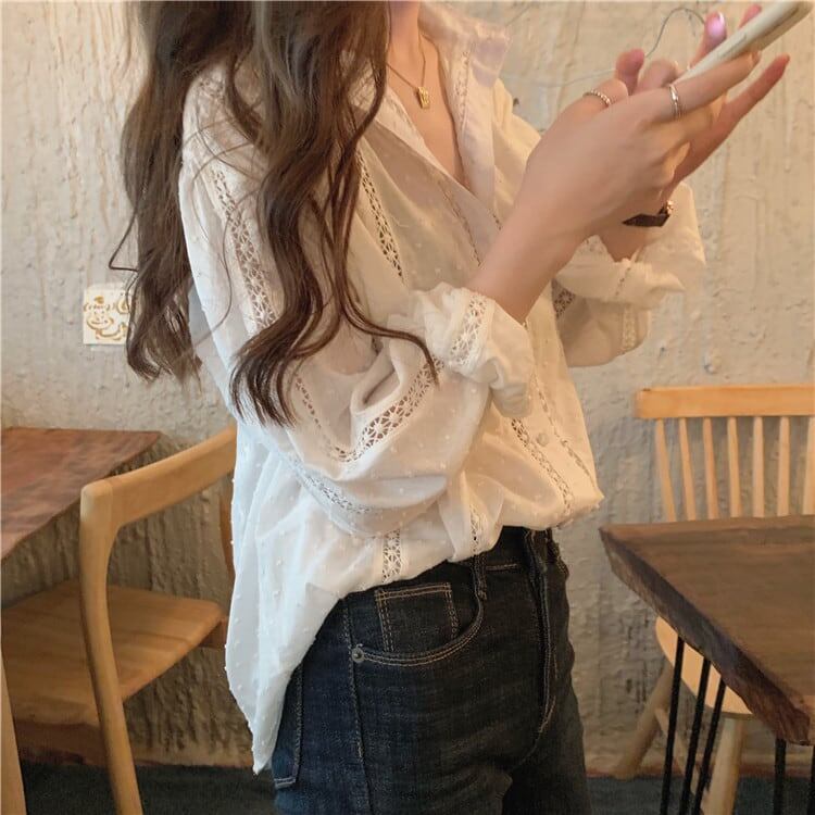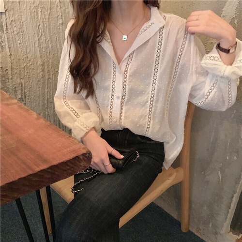 【送料無料】 シフォン シャツ ブラウス l トップス デザイントップス ドット柄 ステッチ レトロ 長袖 韓国 春 夏 秋 10代 20代 30代 40代 ホワイト 白 大人 きれいめ トップス コーデ こなれ感 ルーズ感 デザイン性 大人カジュアル レトロ おしゃれ レース 透け感 シフォン 学生 通学 オフィス ビジネス フォーマル 通勤 OL デート 韓国 ファッション レディース ブラウス 人気 新作 モテ カジュアル スタイル 新作 人気 安い 袖あり お姉さん かっこいい 綺麗め