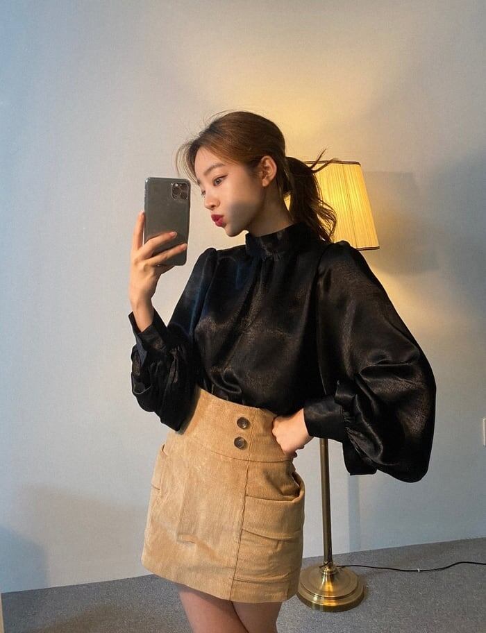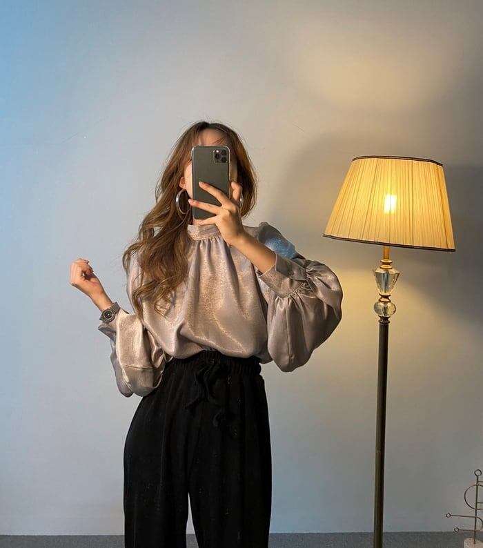 ハイネックボリューム袖ブラウス