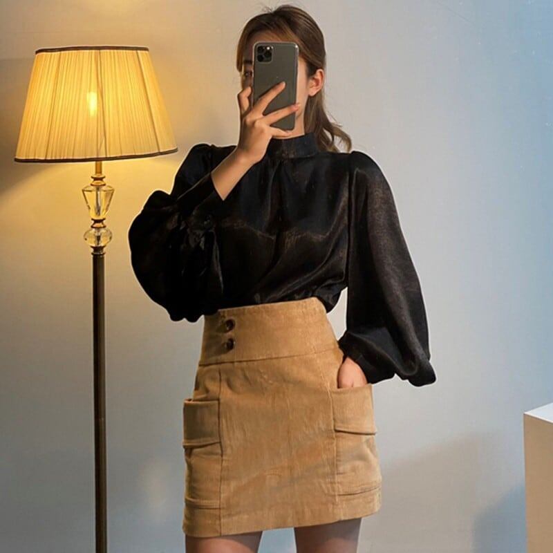 【送料無料】 ハイネックブラウス トップス ブラウス l 長袖 ボリューム袖 ハイネック かわいい 大人可愛い きれいめ シンプル カジュアル 大人 おしゃれ お洒落 大人可愛い 大人女子 こなれ感 無地 春 夏 秋 10代 20代 30代 レディース 学生 通学 デート お出かけ 女子会 休日 着回し 普段使い 重ね着 韓国 韓国系 オルチャン 白 ホワイト 黒 ブラ