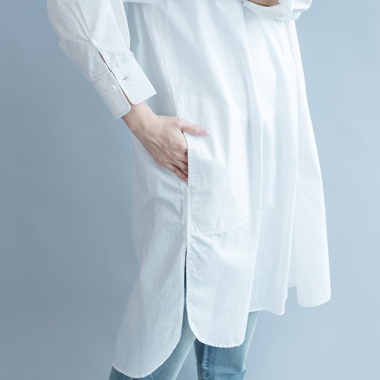 【送料無料】トップス レディース 白 シャツ l バンドカラー スタンドカラー 襟付き 長袖 白シャツ シャツワンピ ロングシャツ シンプル ナチュラル きれいめ 体型カバー ゆったり ルーズ ラフ サイドスリット オーバーサイズ 大人かわいい 大人女子 爽やか ポケット ボタン 白 ホワイト 無地 こなれ感 インスタ映え アイテム 韓国 ファッション カジュアル コーデ 普段使い お買い物 ママ 楽ちん 20代 30代 40代 春 夏 秋 トレンド 抜け感 オシャレ ワンピース