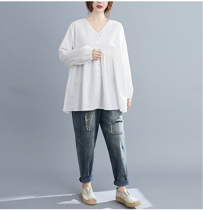 【送料無料】 Ⅴネックギャザーブラウス トップス ブラウス l Vネック フレア Aライン 綿 麻 リネン かわいい 大人可愛い シンプル カジュアル 大人 おしゃれ お洒落 大人可愛い 大人女子 こなれ感 無地 春 夏 秋 10代 20代 30代 40代 レディース デート お出かけ 公園デビュー 女子会 休日 普段使い 韓国 韓国系 オルチャン ファッション サイズ L XL ゆったり ゆる 白 ホワ