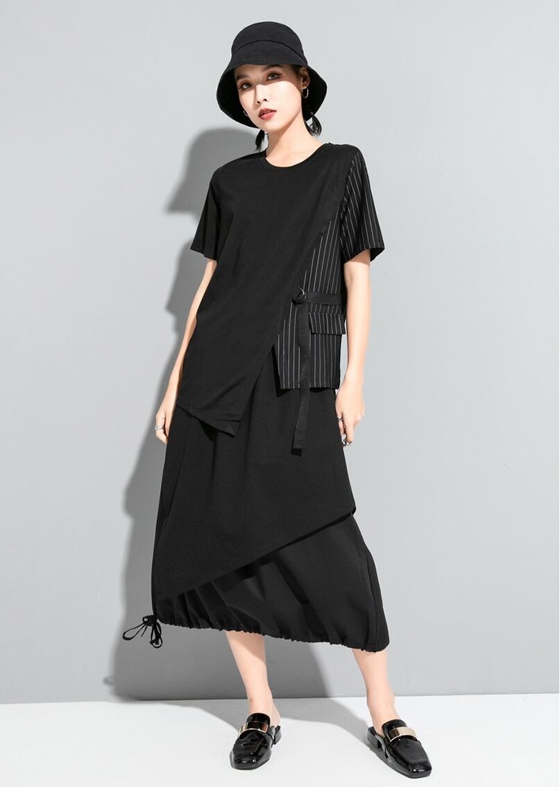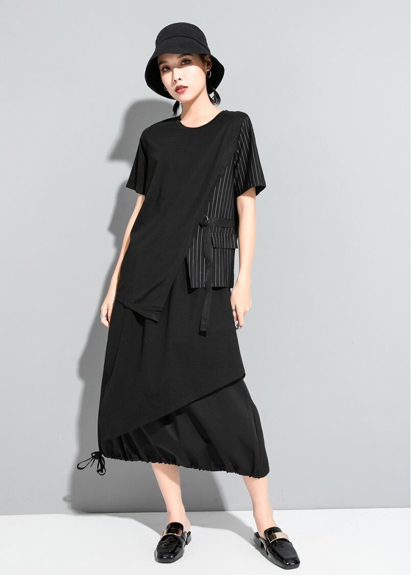 【送料無料】 トップス Tシャツ オーバーサイズ l クルーネック 半袖 アシンメトリー 切り替え 個性的 無地 ストライプ ゆったり 大きいサイズ ルーズ 大人可愛い カジュアル フェミニン シンプル クール ストリート マニッシュ お出かけ デイリー 春 夏 秋 10代 20代 30代 S M L XL