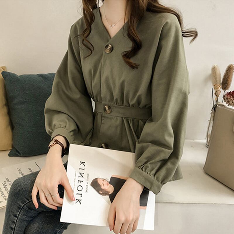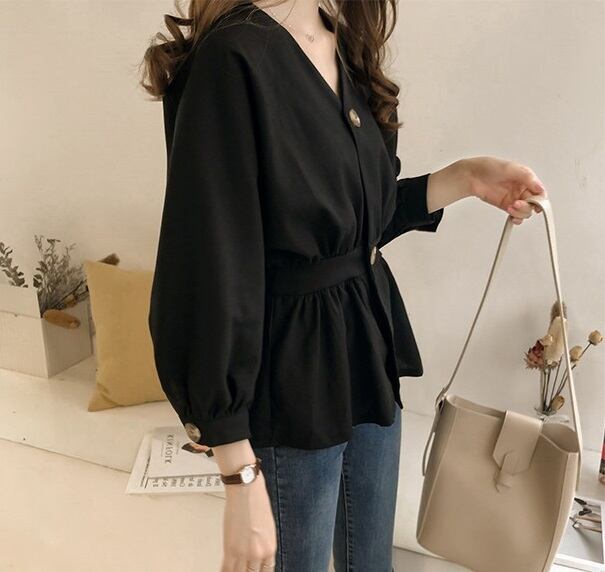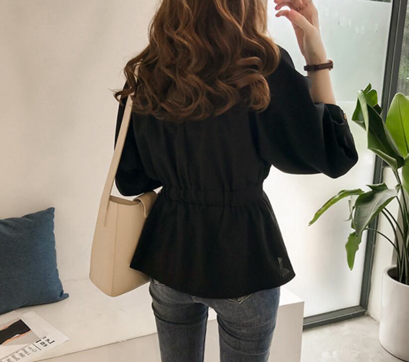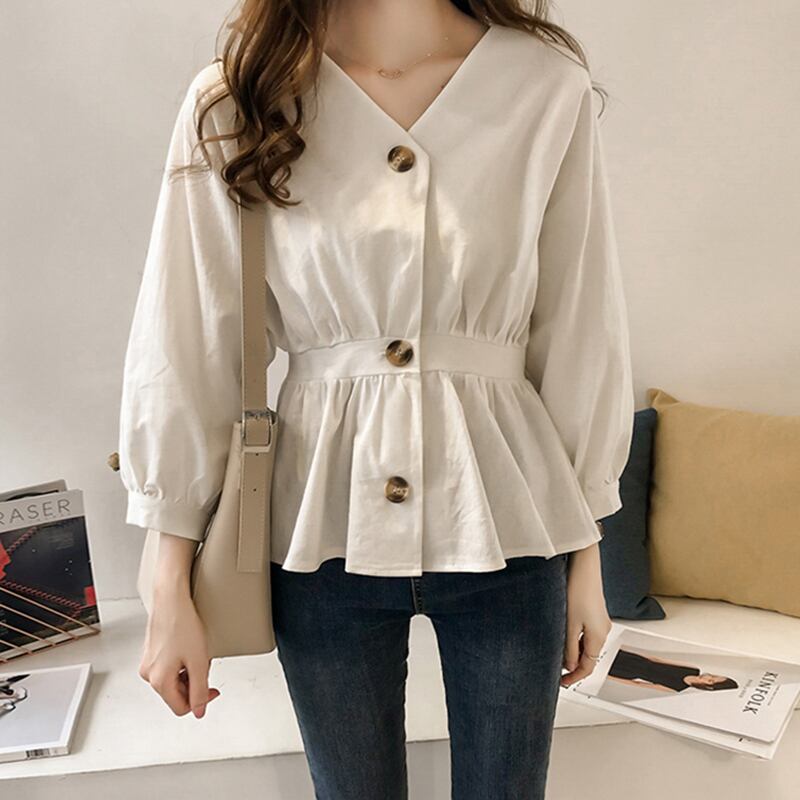 【送料無料】 大人可愛い トップス 長袖 l ブラウス ゴムウエスト 細見え ペプラム Vネック フロントボタン 襟なし 体型カバー レディース ファッション 無地 シンプル 通勤 通学 お出かけ 着回し 普段使い 公園デビュー ママ 20代 30代 M L XL 2XL 3XL 4XL ホワイト 白 アーミーグ