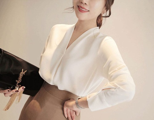 【送料無料】 トップス シャツ ブラウス l シフォン 白シャツ 白ブラウス 長袖 袖あり 襟なし タック入り 抜け感 こなれ感 とろみ シンプル 無地 レディライク 通勤 OL オフィス ビジネス 大人 上品 エレガント きれいめ 普段使い 着回し お出かけ デート 20代 30代 春 秋 S M L XL 2XL ホワイト 白