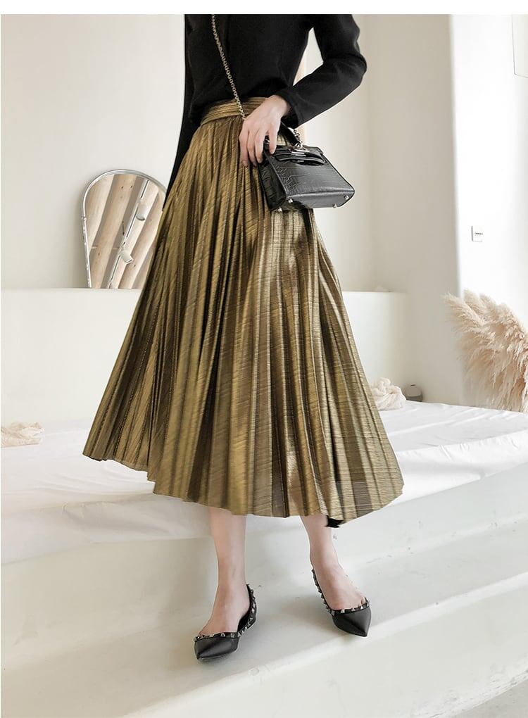 【送料無料】 Aラインスカート プリーツ ラージスイングスカート l メタリック ハイウエスト サイズ: S M L スカート ボトムス ミモレ ミモレ丈 ロング ロング丈 マキシ マキシ丈 Aライン プリーツ きれいめ 大人 上品 おしゃれ お洒落 大人可愛い 大人女子 無地 春 20代 30代 学生 通学 デート お出かけ 休日 イベント 旅行 高原 ホテル ガーデン レストラン 色展開:金色 銀色
