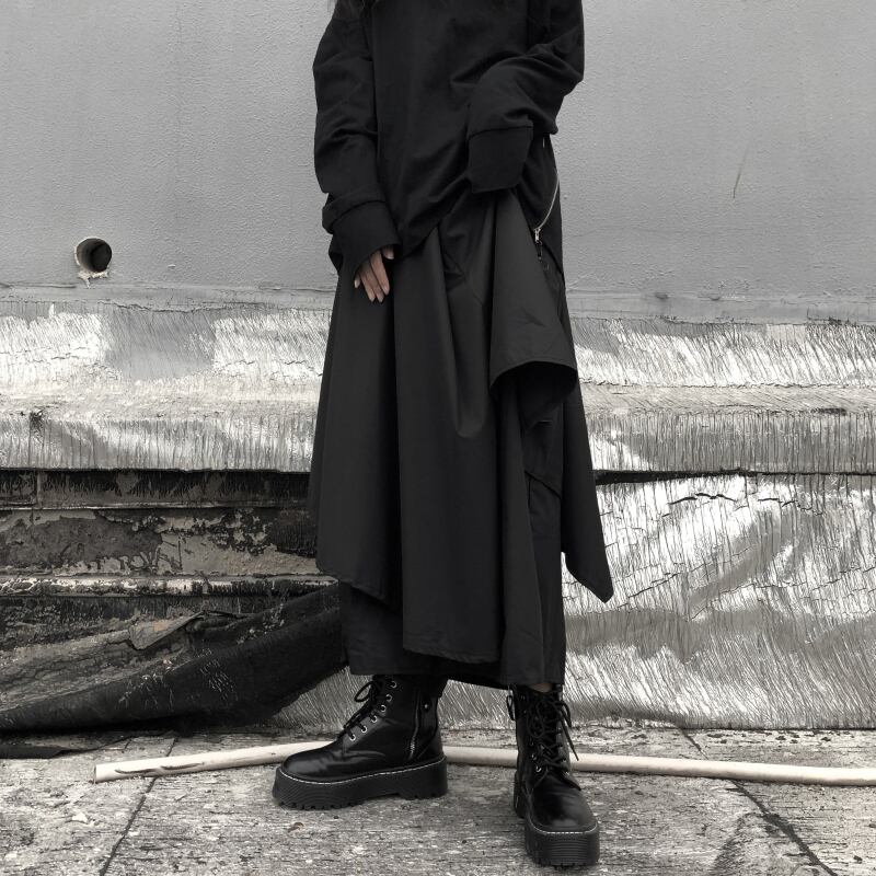 【送料無料】 ボトムス レディース キュロットスカート l パンツ ブラックコーデ 無地 シンプル アシメ アシンメトリー ミモレ丈 シック クール 辛口 かっこいい モード系 ボーイッシュ メンズライク ゆったり ルーズ ゆるだぼ 個性的 お洒落 おしゃれ 通勤 通学 学生 お出かけ 旅行 休日 普段使い 着回し 春 夏 秋 ワンサ