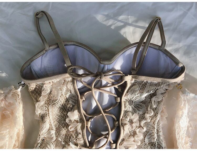あなたの夏を華やかに!水着スイムウェアレースワンピースレースアップ花袖付き2WAY肌見せセクシー大人可愛いデザイン。海やプールでも、韓国風の大人可愛いファッションで夏を満喫しましょう!花柄レースとレースアップが可愛い