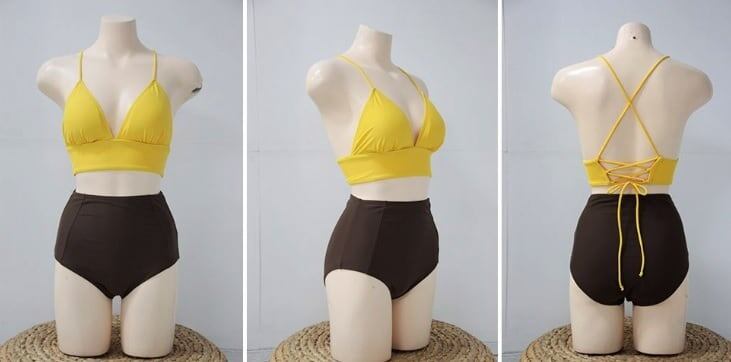 【送料無料】 水着 スイムウェア ビキニ l バッククロス 無地 海 プール ビーチ 体型カバー 韓国ファッション セクシー 4color