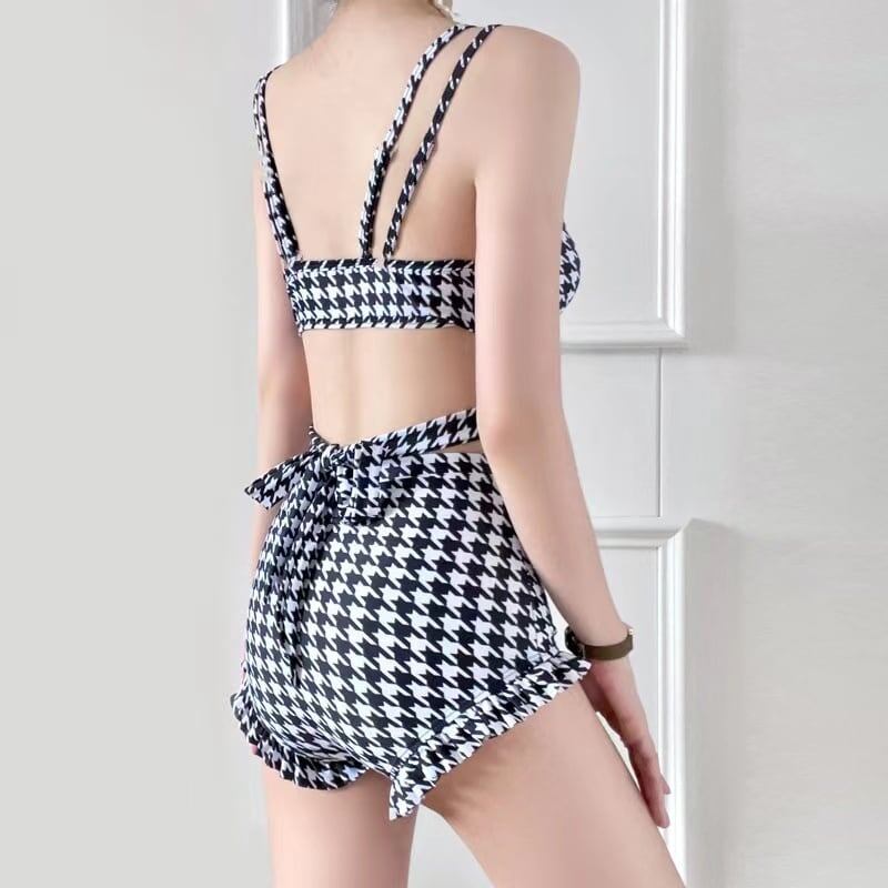 【送料無料】 水着 スイムウェア ビキニ l 千鳥格子 プール ビーチ 体型カバー 韓国ファッション 大人可愛い