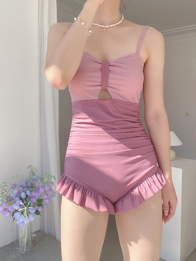 夏のビーチスタイルを引き立てる、ガーリーな2カラーのワンピース水着!リボンやフリルで可愛らしさをプラスし、体型カバー効果も抜群!韓国ファッションならではの大人可愛いデザインで、夏のビーチスタイルを楽しみましょう!