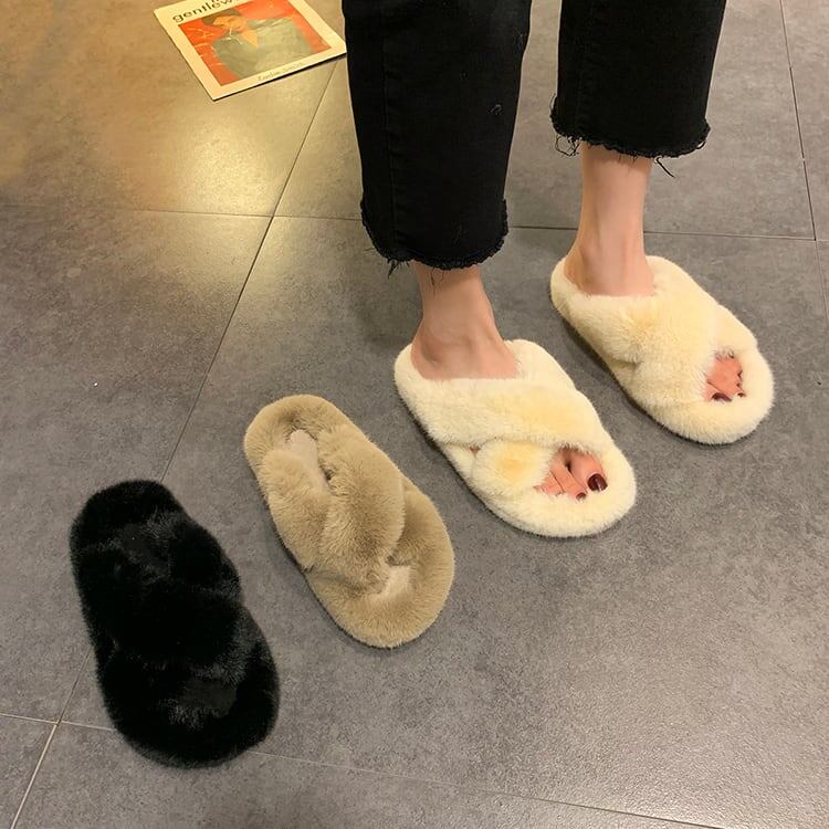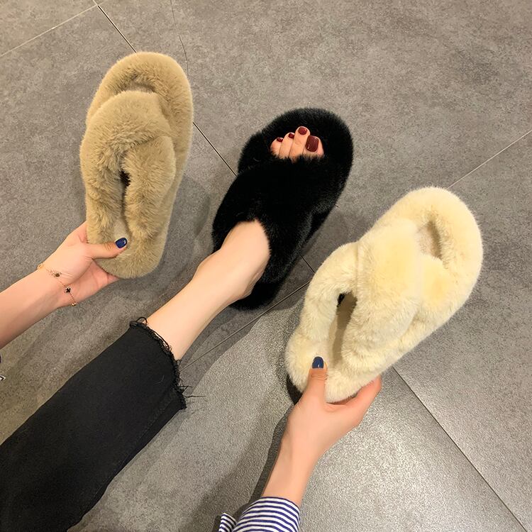 【送料無料】 3色 シューズ ルームシューズ l レディース ブラック 黒 もこもこ ファー クロス カーキ 可愛い オフホワイト 白 もこもこ ふわふわ モコモコ かわいい キュート ラフ 存在感 シンプル おしゃれ 無地 休日 お家 リラックス お泊まり 旅行 お揃い 美脚 細見え 人気 インスタ映え 韓国系 ファッション スタイル