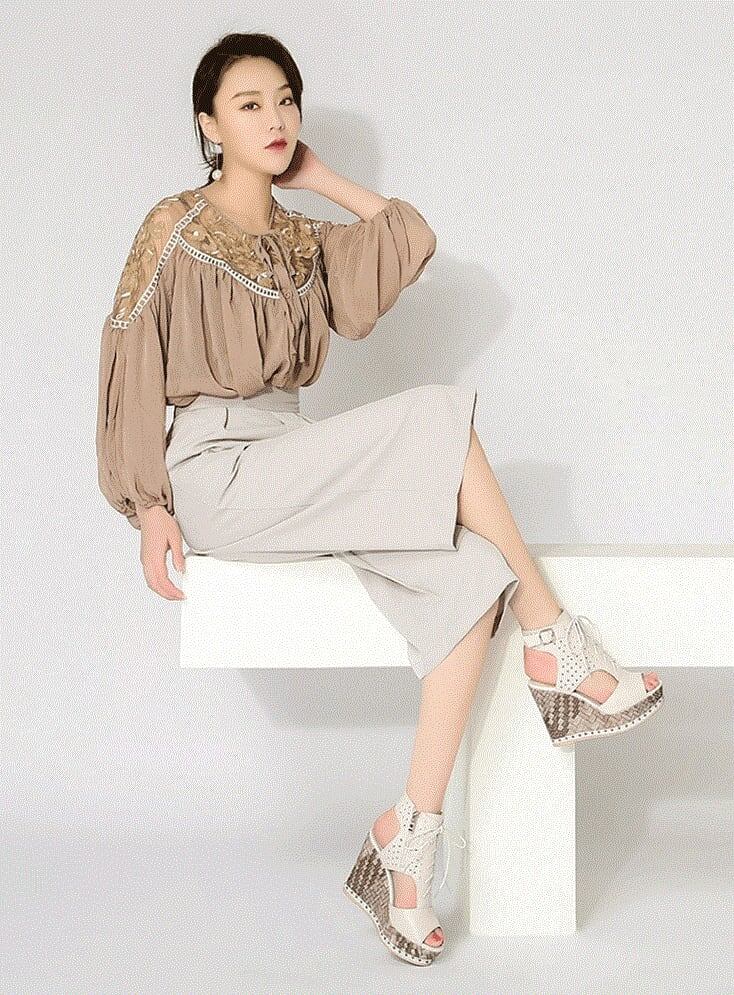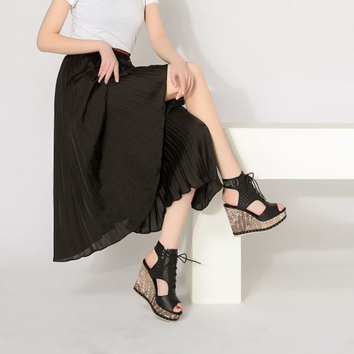 夏の気分を取り入れた、レースアップのサンダルショートブーツ!ストロー素材とウッドソールのウェッジソールがアクセントになった、大人可愛いデザイン。11cmのヒールなのに歩きやすさも抜群!アンクルベルトで安定感も抜群。お洒落でかわいいデザインが