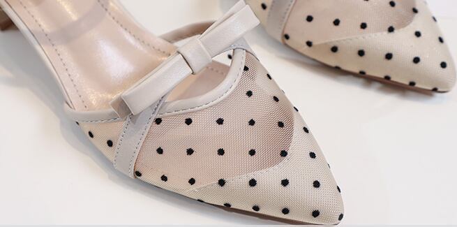 今季、大人可愛いポインテッドトゥサンダルをお楽しみください!シースルードット柄のストラップとミドルヒールが、かわいい大人っぽい印象を与えてくれます。シンプルなデザインなので、カジュアルから上品なコーディネートまで、様々なスタイリングにマッチします。10代