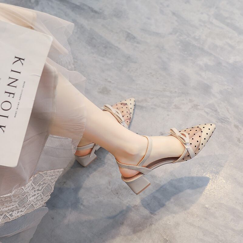 【送料無料】 ポインテッドトゥサンダル シースルードット シューズ l レディースシューズ レディースサンダル ヒールサンダル ヒール ミドルヒール ポインテッドトゥ ストラップ かわいい 大人可愛い シンプル カジュアル 大人 上品 おしゃれ お洒落 ラブリー キュート ガーリー 大人っぽい 女っぽ 抜け感 無地 ドット柄 水玉 春 夏 10代 20代 30代 レディース 学生 通学 デート お出かけ 公園デビュー 女子会 休日 デイリー 普段使い 韓国 韓国系 サイズ 22.5cm
