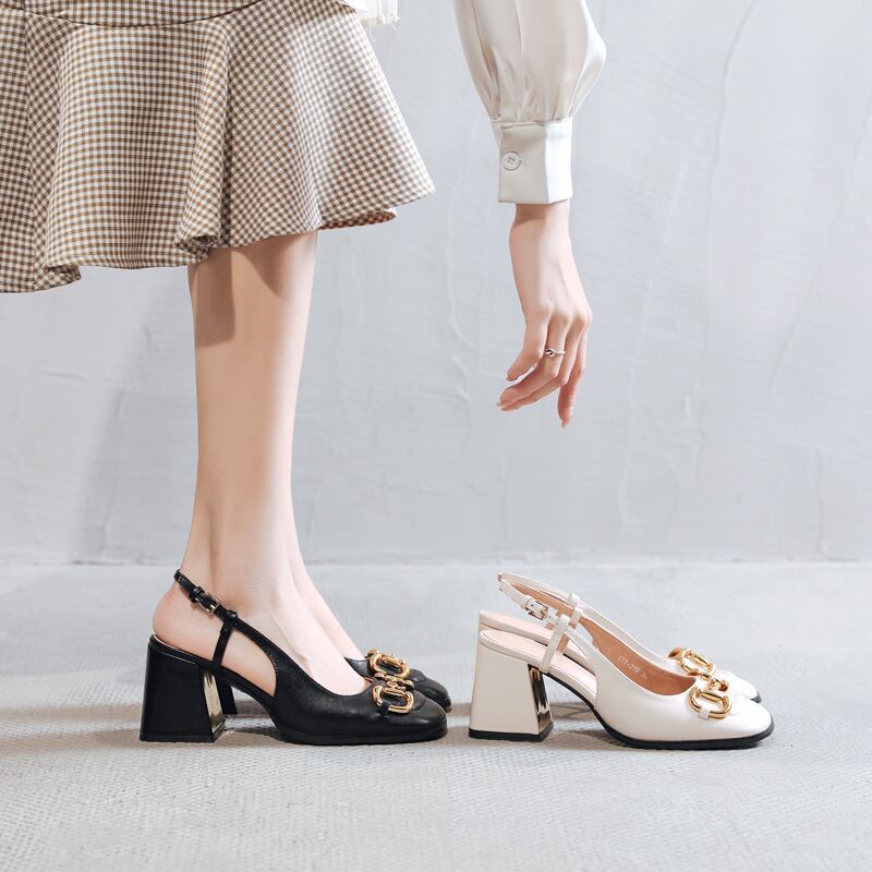 30代 40代ビットサンダル パンプスサンダル チャンキーヒール 太ヒール スクエアトゥ シューズ 靴 くつ クツ ゴールド 装飾 アンクルストラップ 5cm 7cmヒール ミドルヒール ハイヒール 歩きやすい 履きやすい!大人上品なエレガントなスタイルを演出するビットサンダルパンプスサ