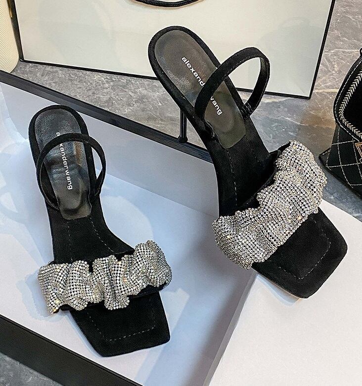 【送料無料】 ミュールサンダル ミュール サンダル l レザー ピンヒール スクエアトゥ シューズ 靴 アンクルストラップ スエード ラインストーン 10cm 7cm 9cm 4cm 5cmヒール ミドルヒール ハイヒール キラキラ エレガント 大人可愛い かわいい 可愛い 大人女子 おしゃれ お洒落 通勤 通学 学生 お出かけ デート 旅行 休日 普段使い パーティー イベント レディース 10代 20代 30代 夏 22.5cm 23.0cm 23.5cm 24.0cm 24.5cm ブラック 黒