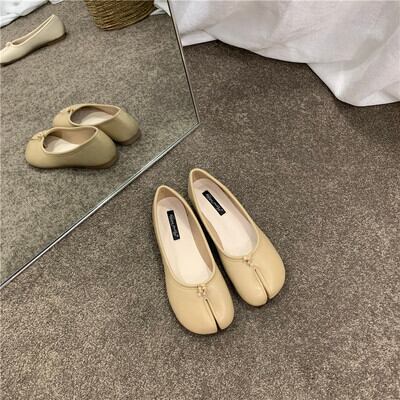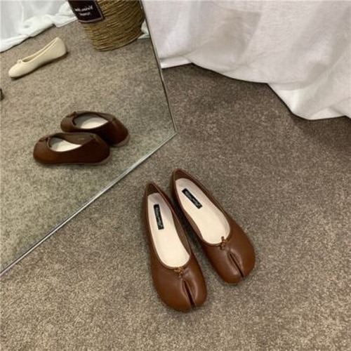 25.0cm【レザーと足袋のお洒落なぺたんこシューズ】レザー×足袋のお洒落なぺたんこシューズ。1.5cmのヒールで、フラットなラウンドトゥがかわいい!大人可愛いシンプルなデザインなので、カジュアルなお洒落なスタイルにもピッタリ!レトロな